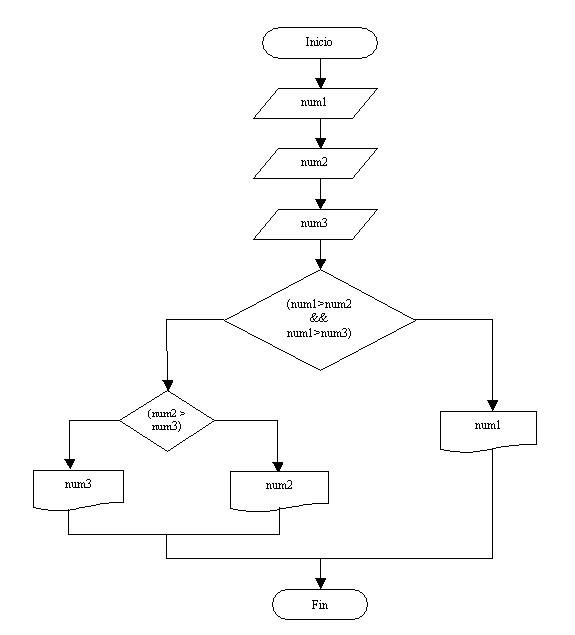 Es decir que se mostrará el contenido de num1 si y sólo si num1 > num2 y num1 > num3.