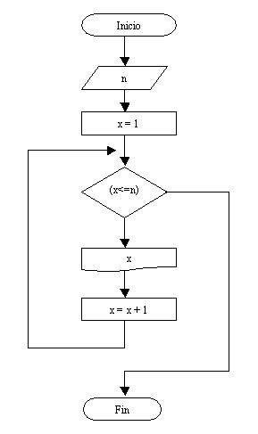 Si el operador carga 10 el bloque repetitivo se ejecutará 10 veces, ya que la condición es “Mientras x<=n ”, es decir “mientras x sea menor o igual a 10”; pues x comienza en uno y se incrementa en uno cada vez que se ejecuta el bloque repetitivo.