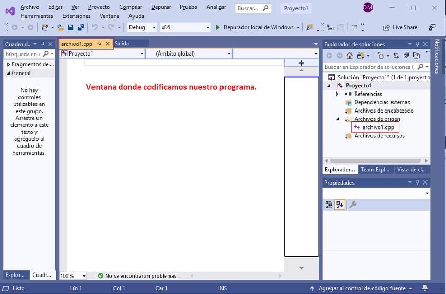 En este momento tenemos todo listo para comenzar a codificar nuestro primer programa: