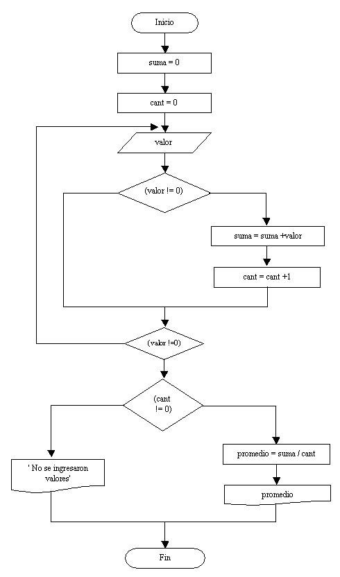 En caso que el contador cant tenga un valor distinto a 0 el promedio se obtiene dividiendo el acumulador suma por el contador cant que tiene la cantidad de valores ingresados antes de introducir el 0.