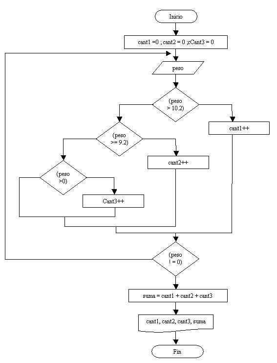 La estructura se repite hasta que se ingresa el valor 0 en la variable peso. Este valor no se lo considera un peso menor a 9.8 Kg., sino que indica que ha finalizado la carga de valores por teclado.