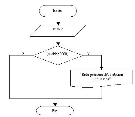 Podemos observar lo siguiente: Siempre se hace la carga del sueldo, pero si el sueldo que ingresamos supera 3000 pesos se mostrará por pantalla el mensaje «Esta persona debe abonar impuestos», en caso que la persona cobre 3000 o menos no aparece nada por pantalla.
