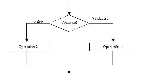 Podemos observar: El rombo representa la condición. Hay dos opciones que se pueden tomar. Si la condición da verdadera se sigue el camino del verdadero, o sea el de la derecha, si la condición da falsa se sigue el camino de la izquierda.