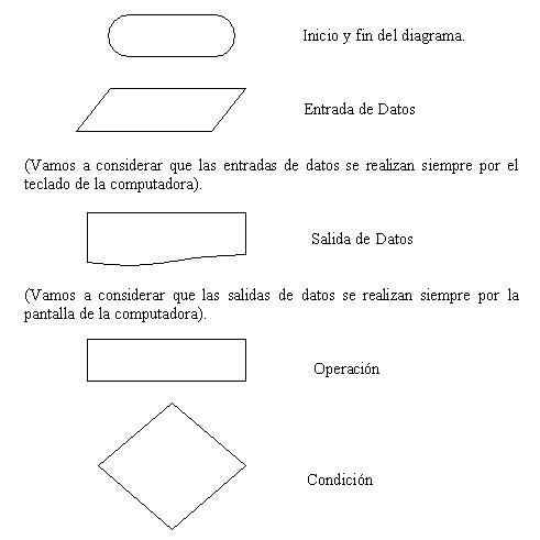 Los símbolos gráficos a utilizar para el planteo de diagramas de flujo son: