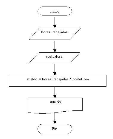En el ejemplo tenemos dos datos de entrada: horasTrabajadas y costoHora, a las entradas las representamos con un paralelogramo y hacemos un paralelogramo por cada dato de entrada.