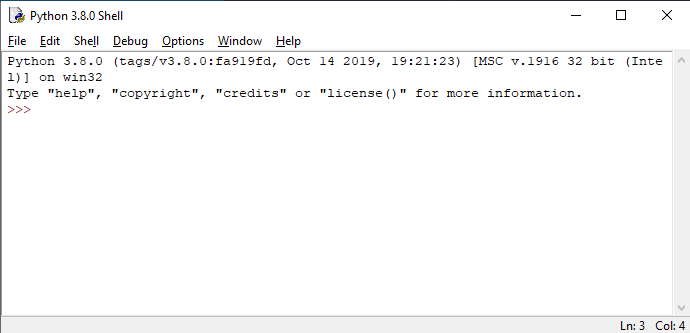 Una vez que iniciamos el Python aparece la siguiente ventana: