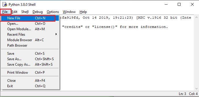 Para crear nuestro primer programa debemos seleccionar desde el menú de opciones «File»->»New File»: