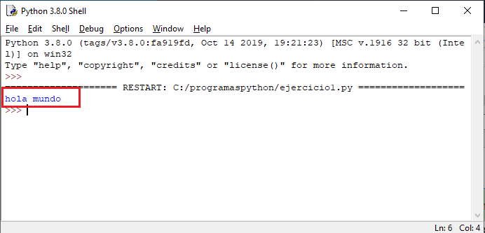 Podemos ver en otra ventana el resultado de la ejecución de nuestro primer programa en Python: