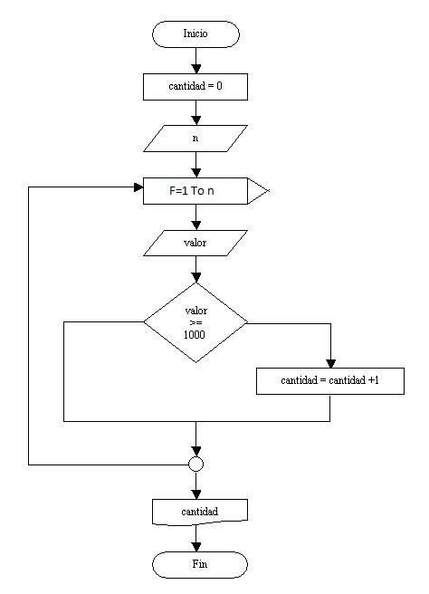 La variable valor se ingresa dentro de la estructura repetitiva, y se verifica si el valor de la misma es mayor o igual a 1000, en dicho caso se incrementa en uno el contador cantidad.