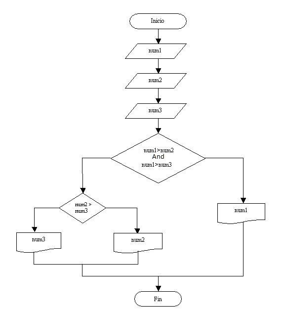 Es decir que se mostrará el contenido de num1 si y sólo si num1>num2 y num1>num3.