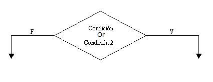Traducido se lo lee como «O». Si la condición primera es Verdadera o la condición segunda es Verdadera, luego ejecutar la rama del Verdadero.