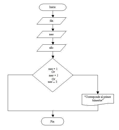 Mostramos el mensaje «Corresponde al primer trimestre» en caso que el mes ingresado por teclado sea igual a 1, 2 ó 3.